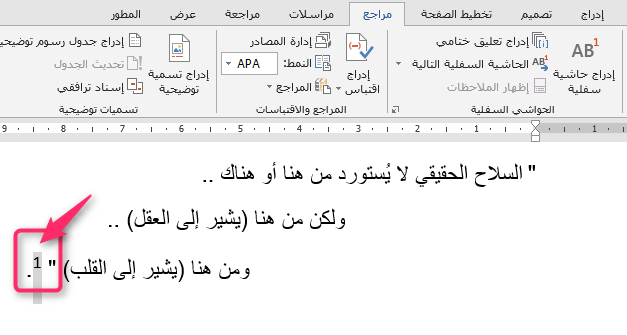 تغيير حجم أرقام الهوامش في النص 1 مثال.p...