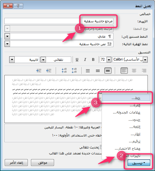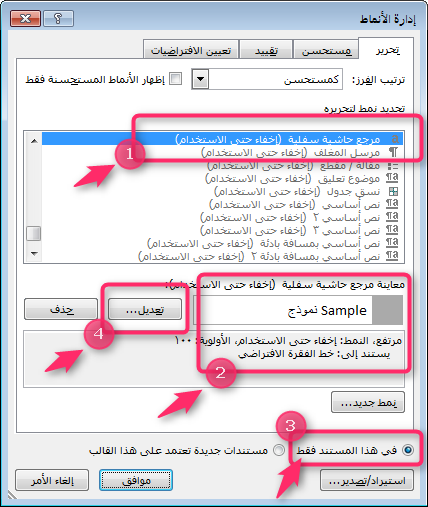 تغيير حجم أرقام الهوامش في النص 4 تعديل...