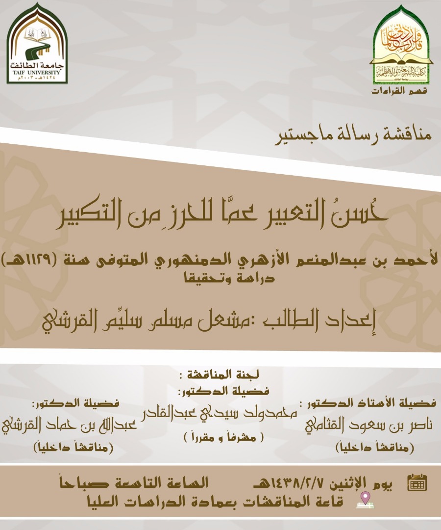 إعلان مناقشة ماجستير مشعل القرشي.jpg...